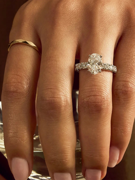 0.7 CT Oval Lab-Created Diamond Halo & Pave Elegance Ring