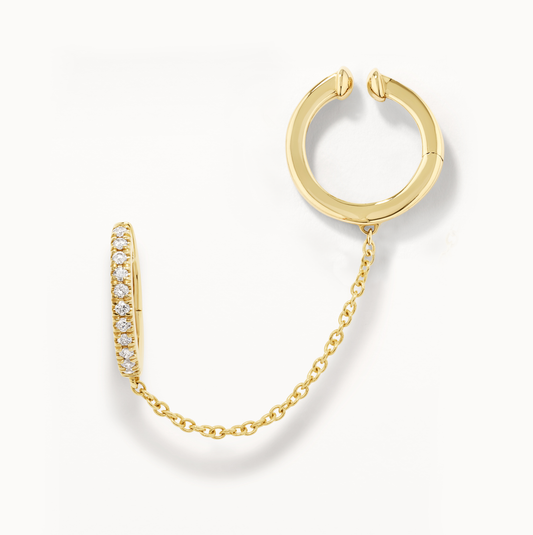 Elegant 0.06 TCW Round Lab Grown Diamond Huggie Earrings with Chain Cuff