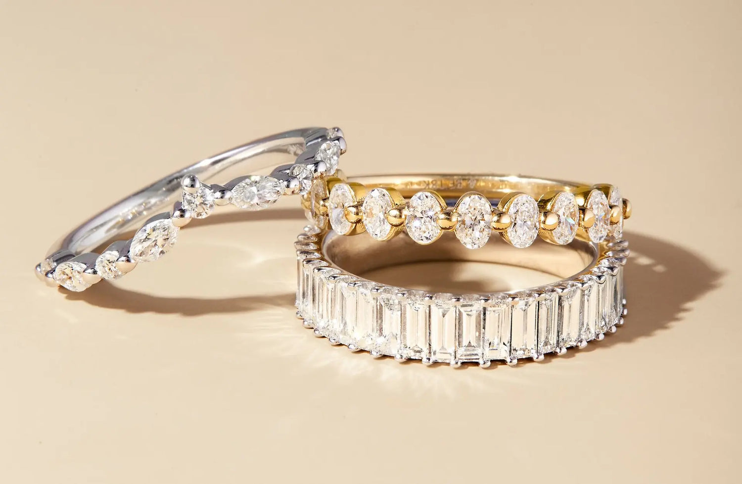 Many women opt to pair their wedding band with their engagement ring to create a cohesive and personalized stack. A third band can be added to complement the set, or multiple thinner bands can be combined for a layered effect. Incorporating a ring guard can also enhance and protect the rings.