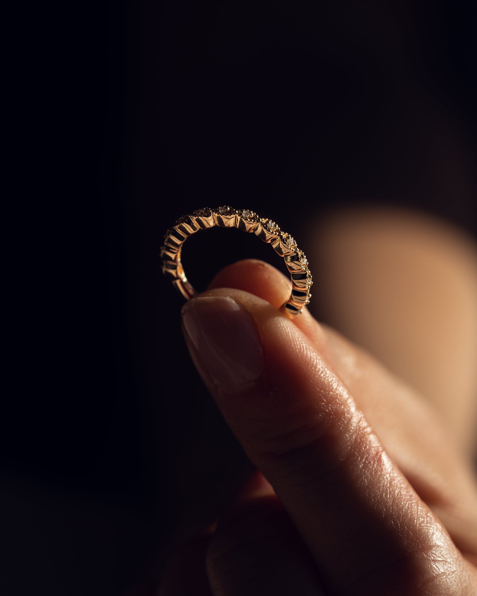 • In the case where the ring features a shank adorned with full eternity stones, resizing becomes unfeasible due to the intricate design and setting. Hence, we are unable to proceed with resizing in such instances.